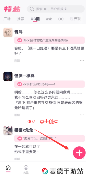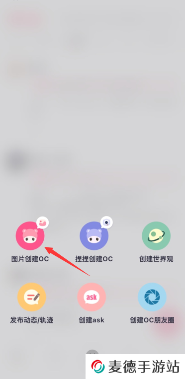 登录后,在app内找到创建新OC的功能入口。
