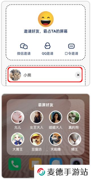 5、主动发消息可以在霸屏页面,也可以通过摇一摇摇出霸屏好友列表,点击头像来发送消息。