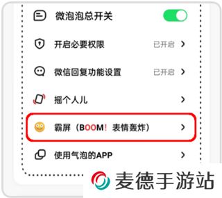 2、按照引导开启所需权限后,打开“微泡泡总开关”,点击霸屏进入后添加好友就可以给Ta发送霸屏消息啦。