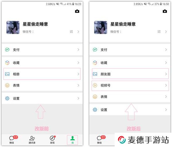 微信8.0版本手机版功能一、我的界面改版最明显的变化,就是微信右下角的【我】,可以看到【相册】被改成【朋友圈】,如果你创建过视频号,那么这里还会显示你的个人视频号入口。