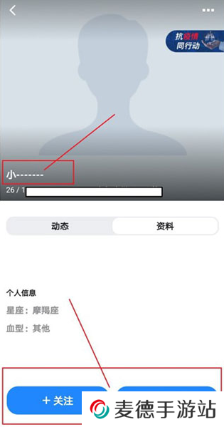 5、在该用户界面,我们可以点击底部的操作,进行关注或聊天。