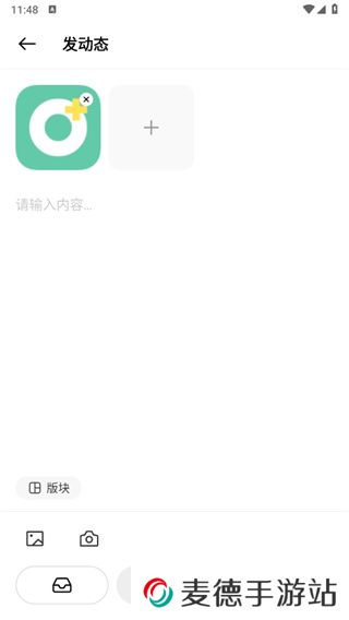 2、然后在发动态的页面中我们需要点击的是页面中的【加号图标】;