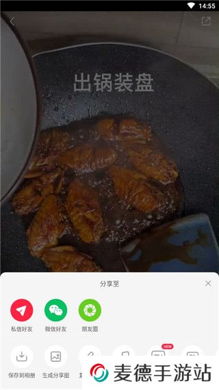 6、如果有喜欢一起做美食的朋友,还可以点击右上角分享给他一起进行观看制作。