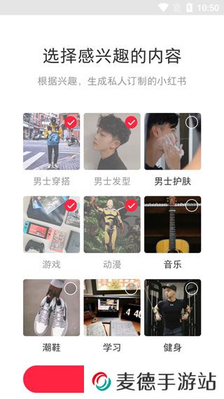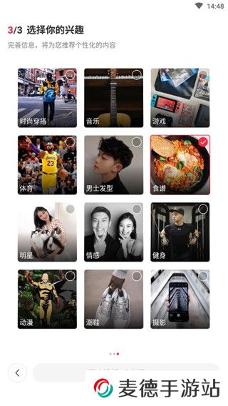 3、选择感兴趣的内容,系统会根据这些进行推荐;