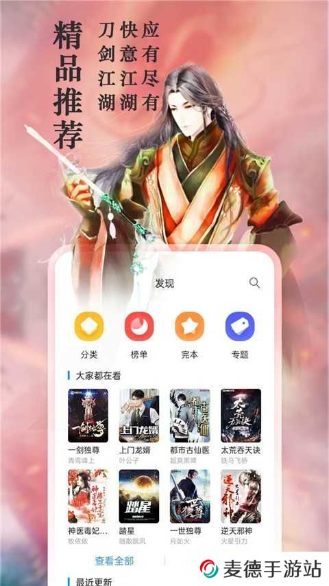 1、使用笔趣阁纯净版App可通过书城和分类快速找到你想要看的小说和漫画。