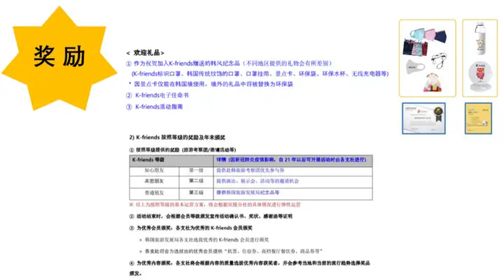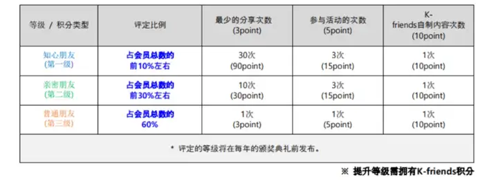 K-friends 共有3个等级,会根据活跃程度在2020年12月评定等级,不同等级的会员会获得由韩国旅游发展局提供的各种各样的奖励。