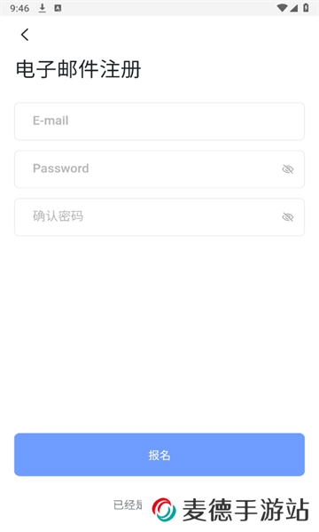 以电子邮箱注册为例,输入自己需要注册的电子邮箱,软件会发送链接到邮箱中