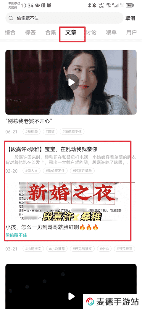 3、待搜索结果出来后,将页面选择文章页面,并在文章页面中寻找你想看的文章即可